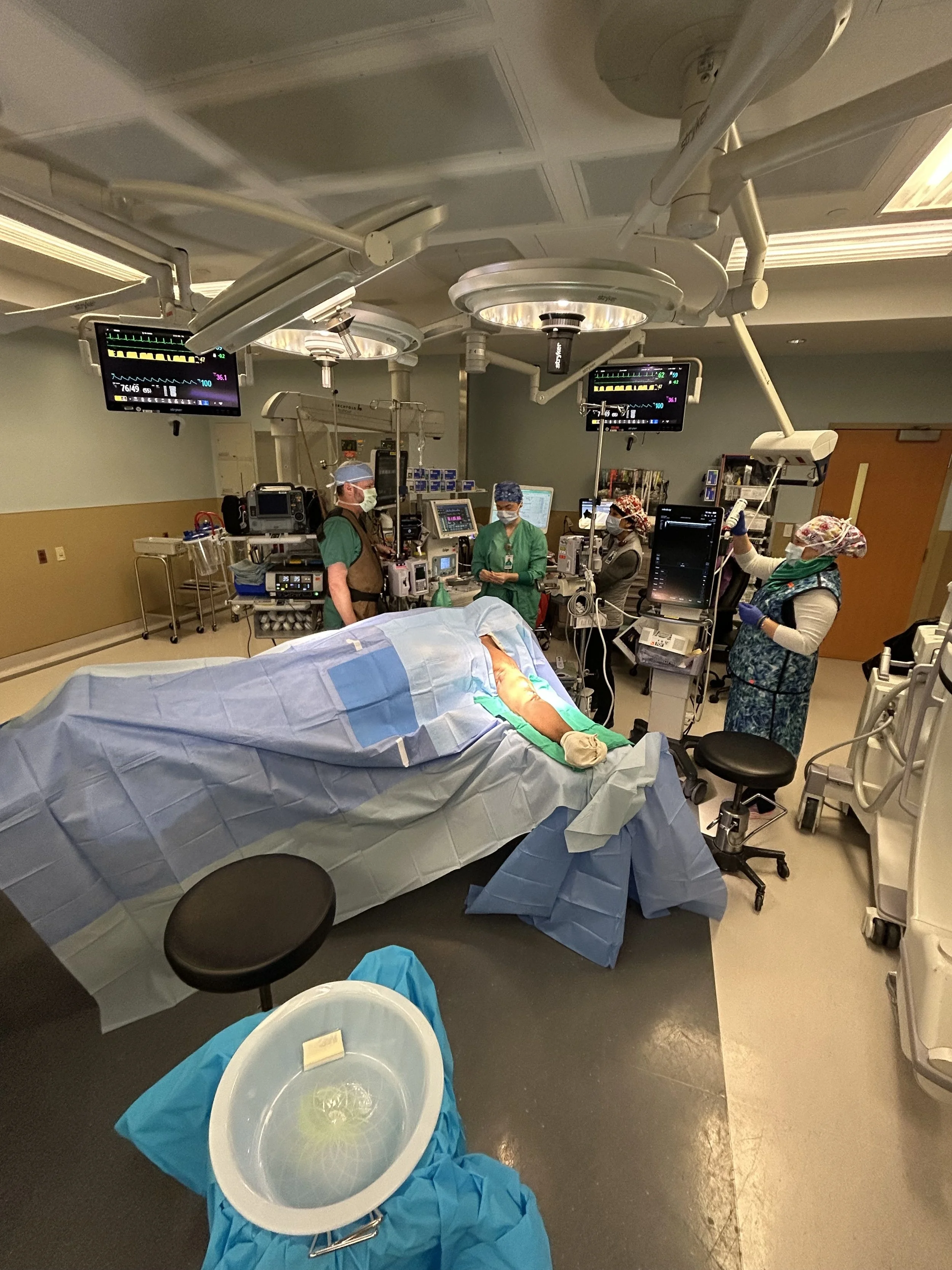 Ultrasound, C-arm, and Doppler units complete the habitat.